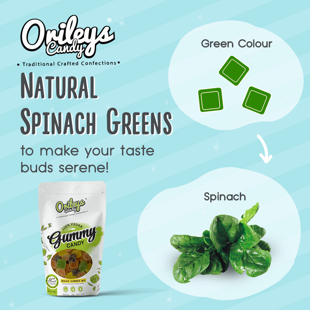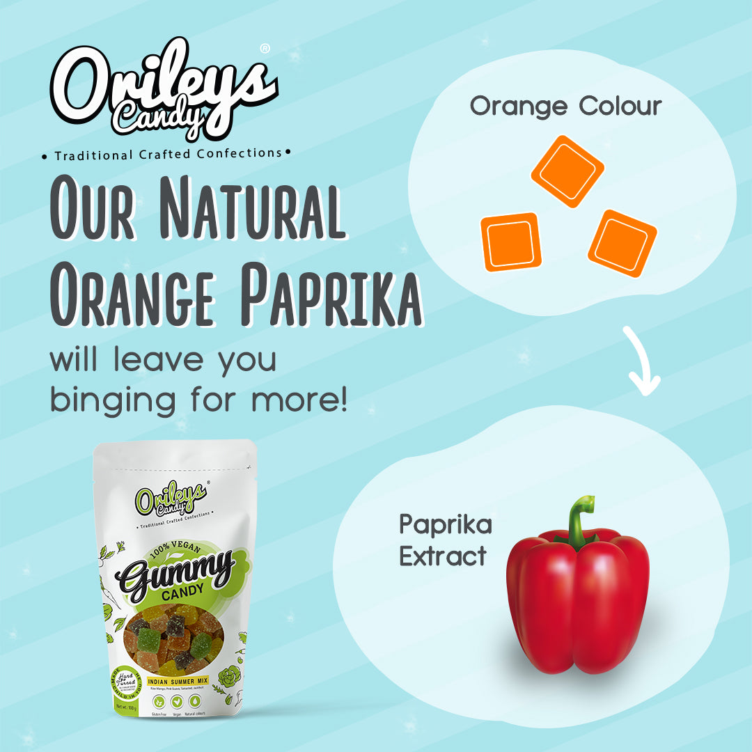 Orileys Vegan Natural Gummy Candy - Indian Summer Mix Flavour Cubes -250g